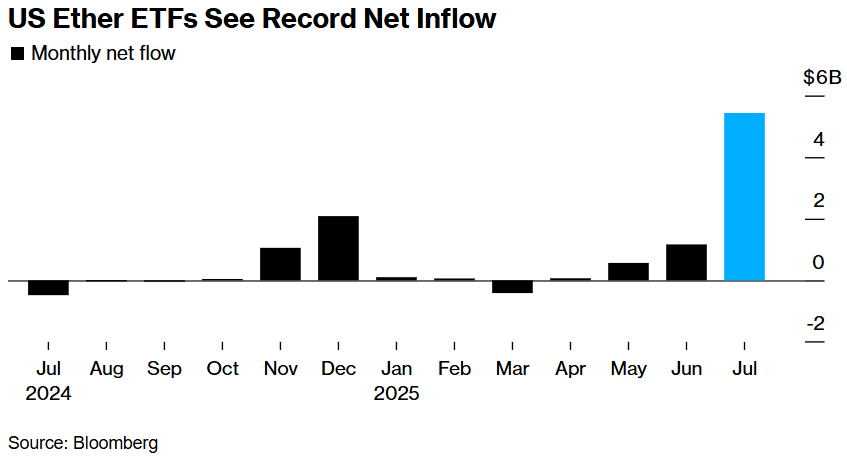 The recent uptick in Ether can be attributed to a significant influx of capital into spot exchange-traded funds, coupled with an increasing interest from corporations accumulating the token for their financial reserves. The token has surged about 190 percent since its low in April, driven by unprecedented inflows into funds that invest directly in the token.