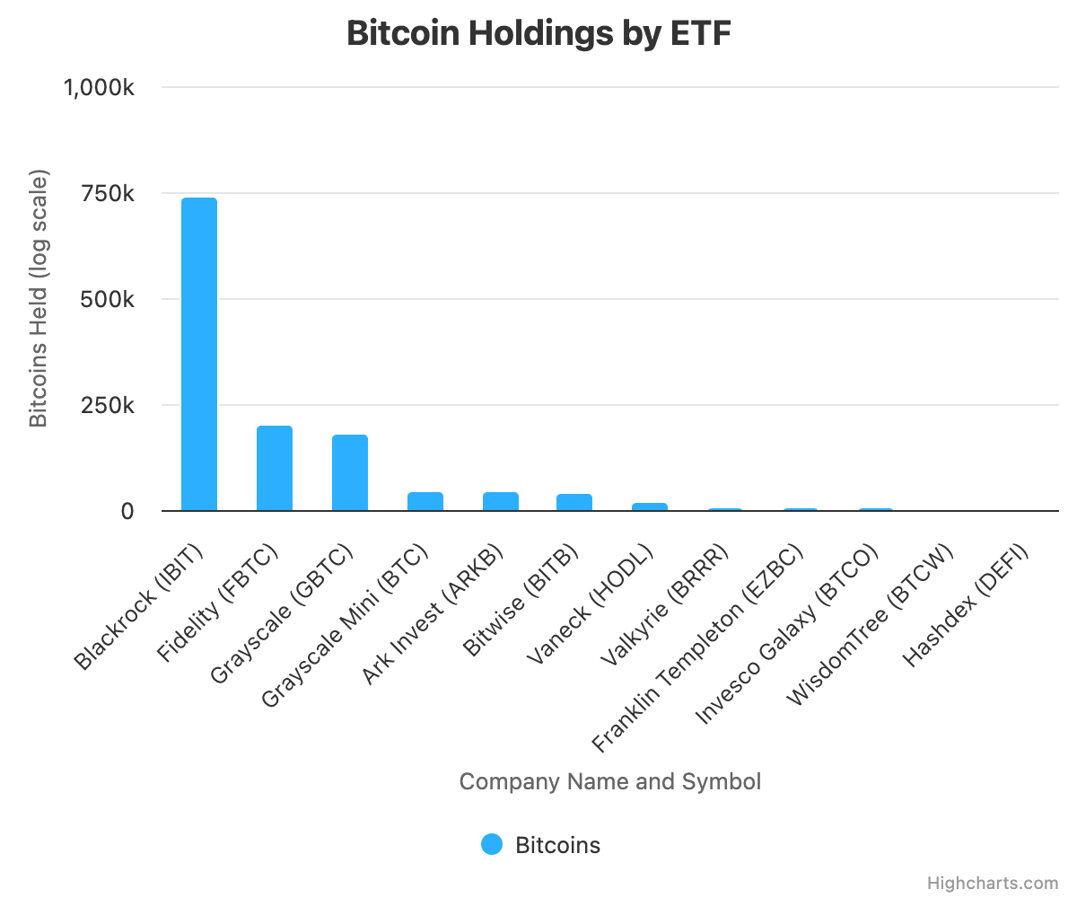 IBIT now holds a substantial portion of all Bitcoin ETF assets in the U.S. and has become the second-largest holder of Bitcoin globally, only trailing the holdings of Bitcoin founder Satoshi Nakamoto. Bitcoin ETFs as a whole now hold just over 7% of the total bitcoin supply.