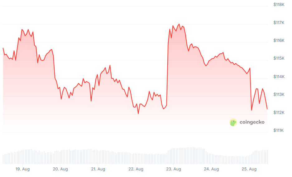 Still, Bitcoin has languished well below its all-time high hit on August 14. Its price has fallen below $113K, experiencing a significant reversal after reaching new record peaks, as macroeconomic pressures increase despite optimism for Fed rate cuts.