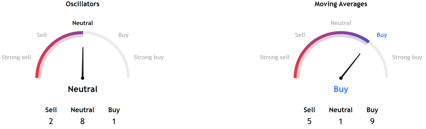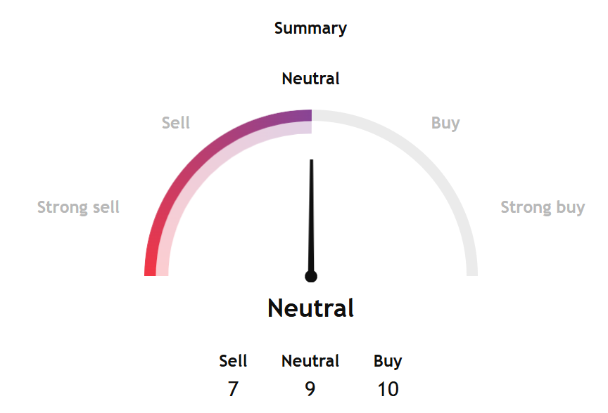 TradingView's BTCUSD technical analysis, which includes the most widely used technical indicators, including moving averages, oscillators, and pivots, gave a neutral signal for the week ahead.