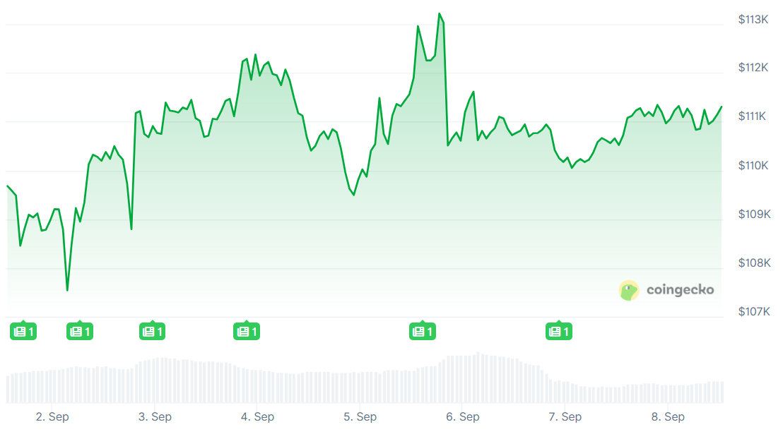 But Bitcoin remained steady on Monday, trading around $111,000 per coin following a lackluster weekend characterized by minimal price movement.