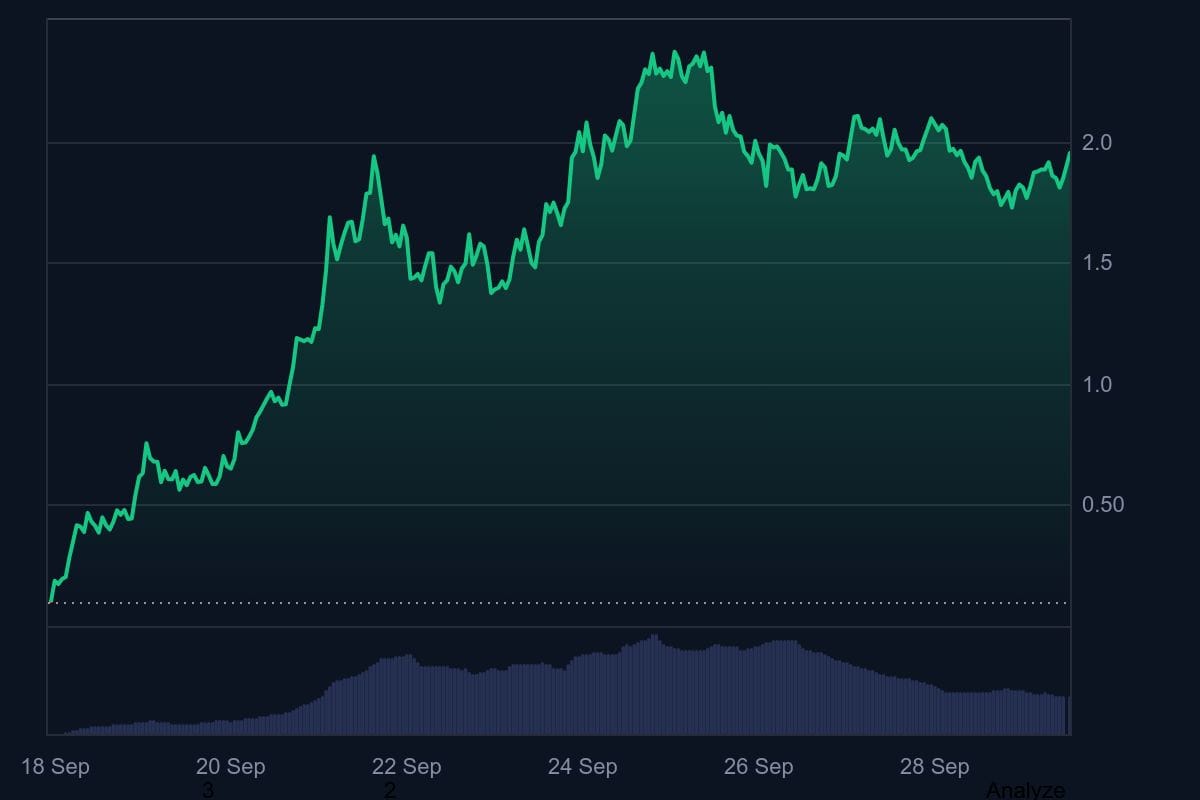 The $ASTER token launched at $0.08439 and reached an all-time high of $2.42 on September 24 before settling around $1.94 as of publication time, representing an over 2,o00% increase from the token generation event price. The surge pushed market capitalization above $3 billion.