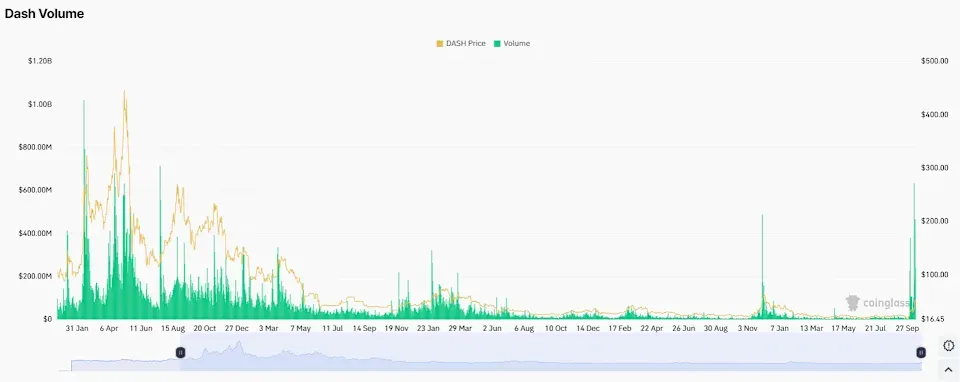 The previous instance of significant volume for Dash occurred in early 2021, when the heightened activity propelled a rally to $400.