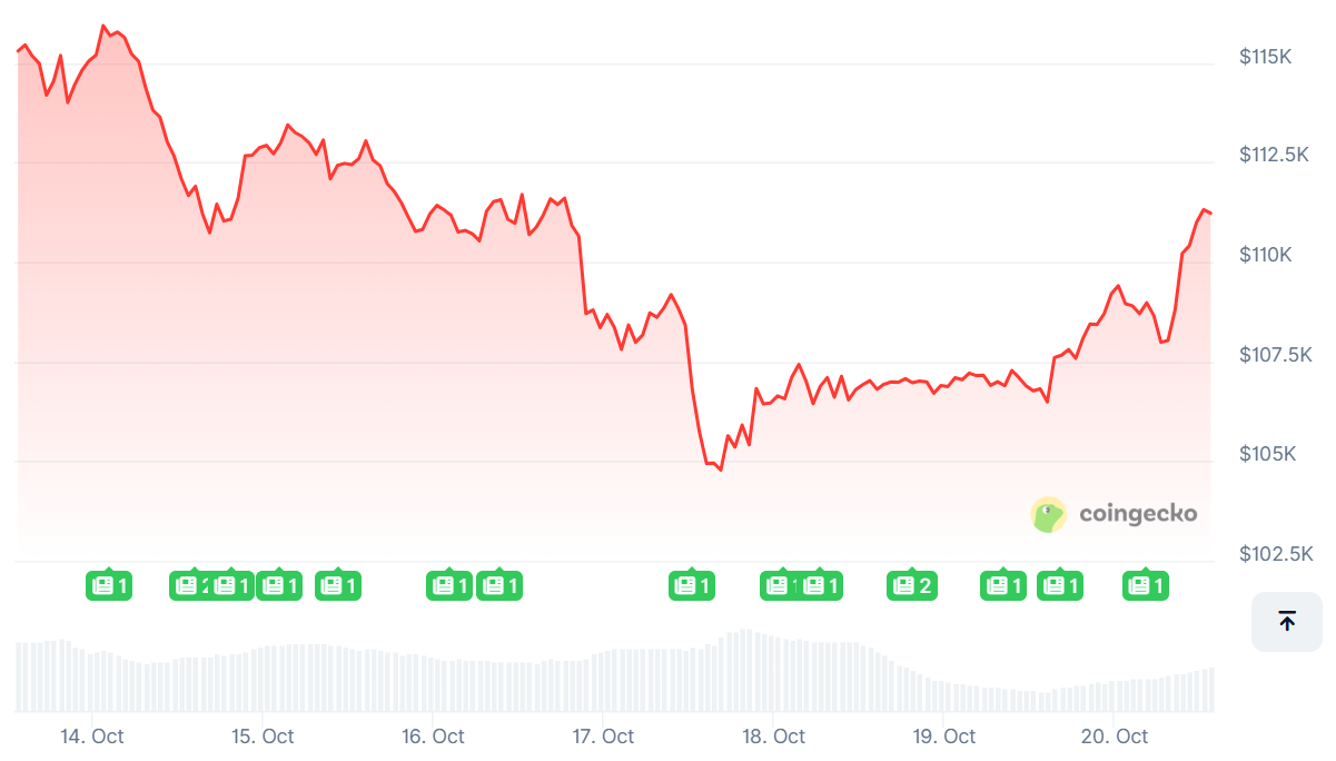 Bitcoin extended its weekend recovery into Monday, with gains 4.2% to above $111,000 after having crashed as much as 4% late last week to about $103,350 to mark the lowest level since June.