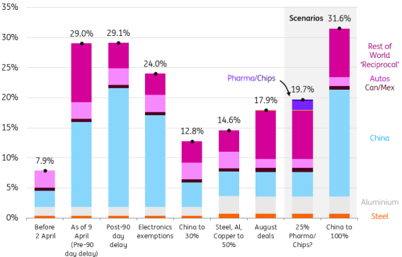 Ultimately, the outcome is likely to reflect a reduced effective tariff rate on imports into the US. This could alleviate the strain on inflation and, theoretically, the employment sector as well.