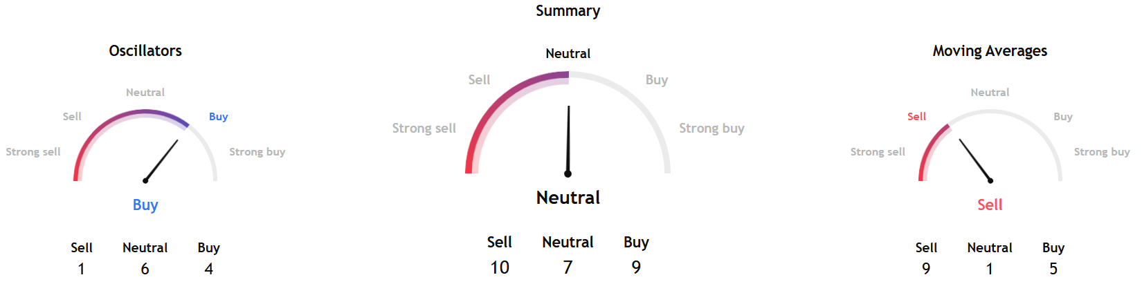 TradingView's overall Bitcoin Technical Analysis gauge, based on the summary, is based on the most popular indicators, such as moving averages, oscillators, and pivots, and points to a neutral signal for the coming week.