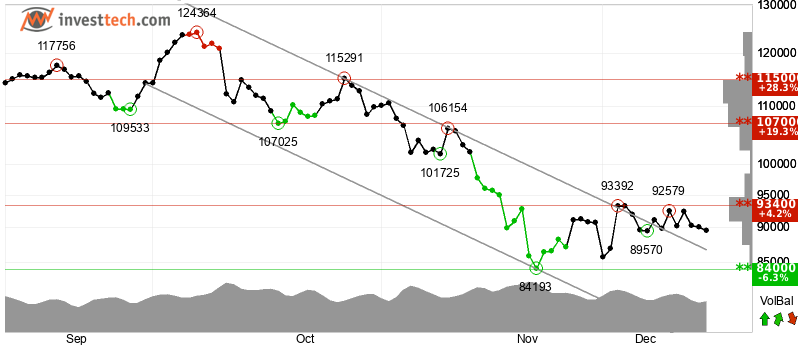 Investech said, "Bitcoin has broken through the ceiling of a falling trend channel in the short term. This indicates a slower falling rate initially, or the start of a more horizontal development. The token has support at $84,000 and resistance at $93,400."