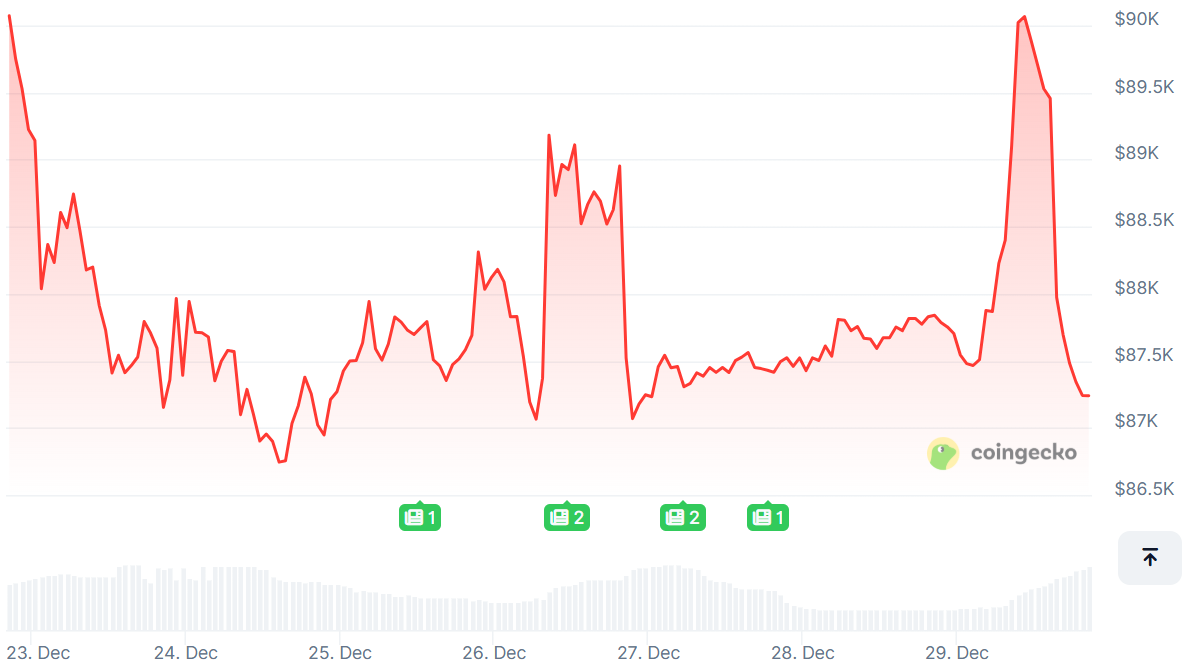 The much-anticipated year-end surge of Bitcoin towards $90,000 lost momentum, mainly due to insufficient demand and subdued onchain activity. For the token to initiate a rally heading into 2026, it needs to overcome the immediate resistance at $90,000.