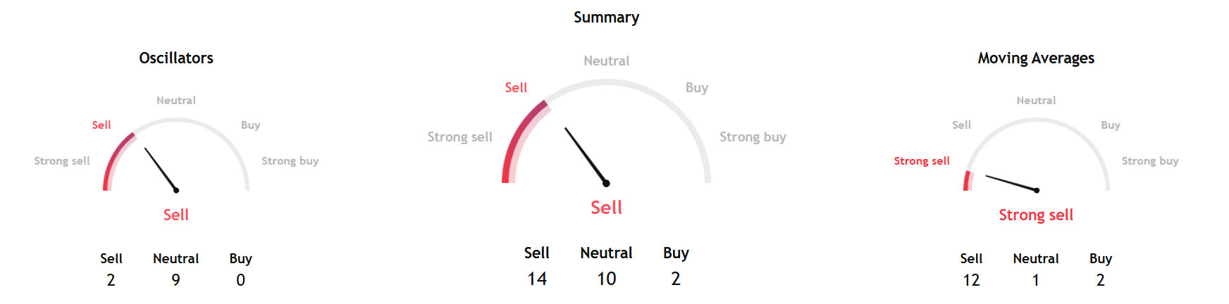 TradingView's technical analysis overview based on key data from moving averages, oscillators, and pivots for the week ahead showed a sell signal.
