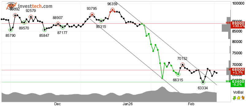 InvestTech noted, "Bitcoin has broken through the ceiling of a falling trend channel in the short term. This indicates a slower falling rate initially, or the start of a more horizontal development. The token is approaching resistance at $68,000, which may give a negative reaction. However, a break upwards through $68,000 will be a positive signal."