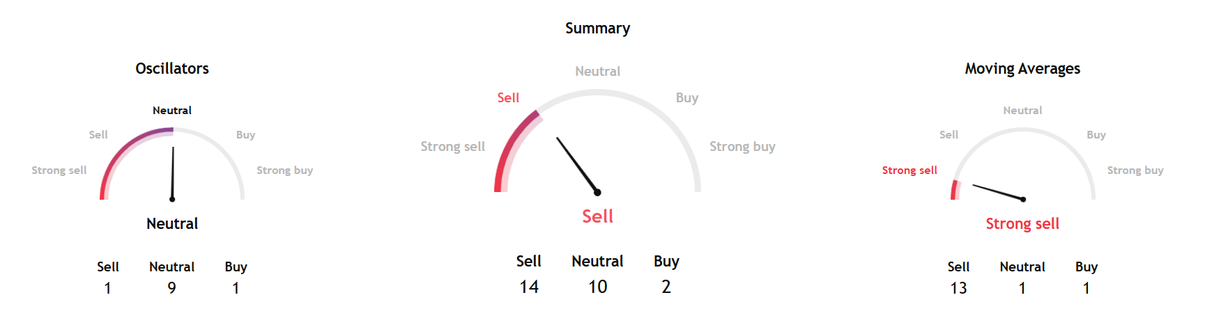 TradingView's technical analysis overview for the coming week, based on key data from moving averages, oscillators, and pivots, showed a sell signal.