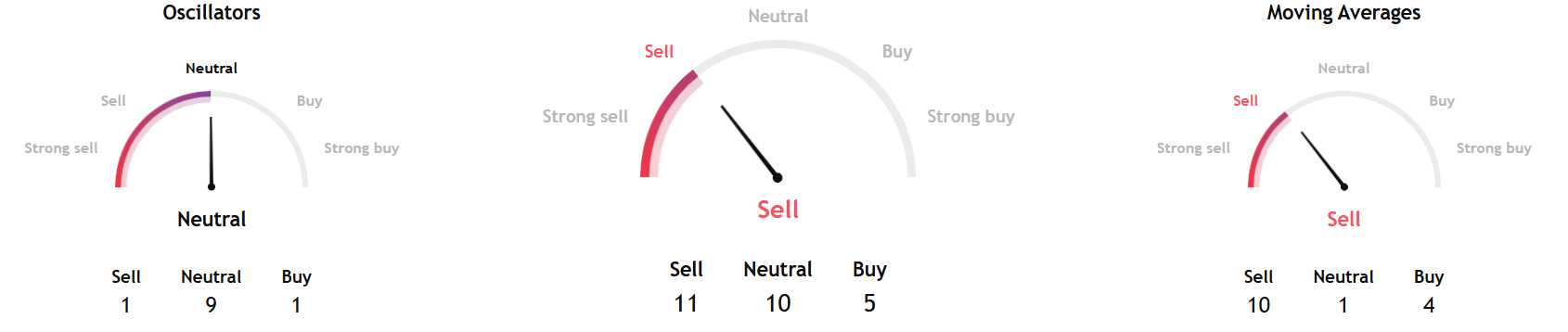 TradingView's technical analysis overview based on key data from moving averages, oscillators, and pivots for the week ahead showed a sell signal.