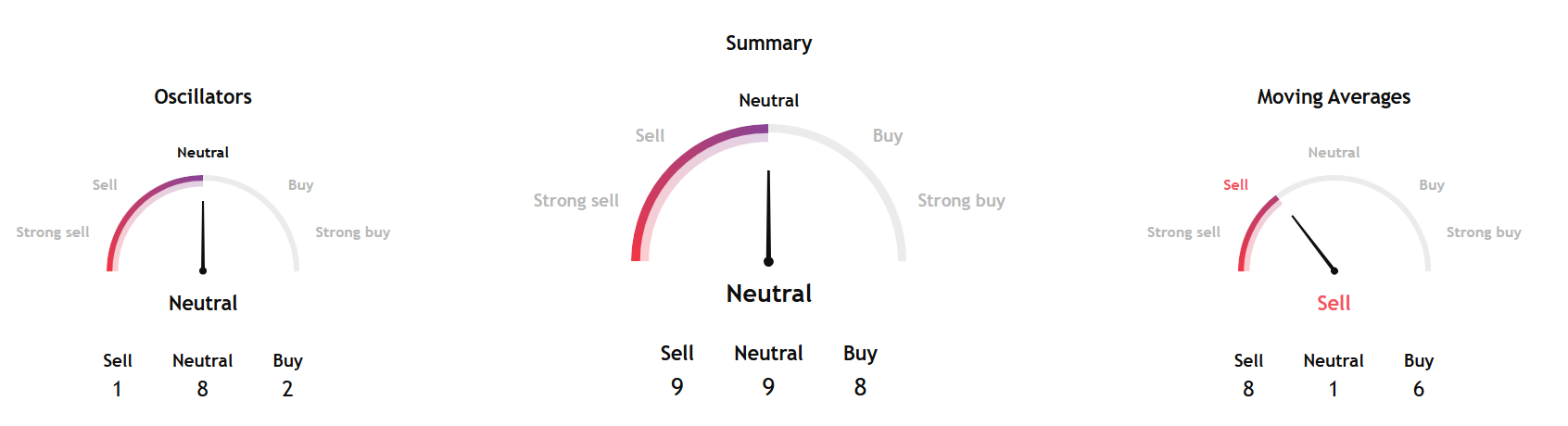 However, the moving averages indicators point to a sell signal even as oscillators show a neutral stance.