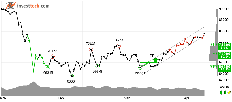 InvestTech added,"RSI is above 70 after a good price increase in the past weeks. The token has strong positive momentum and further increase is indicated. However, particularly for big stocks, a high RSI may be a sign that the stock is overbought and that there is a chance of a reaction downwards. The RSI curve shows a rising trend, which supports the positive trend. The token is overall assessed as technically positive for the short term."